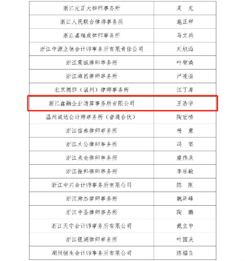 浙江省人民法院破產案件管理人