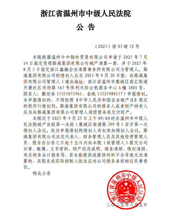 路港集團有限公司破產清算公告
